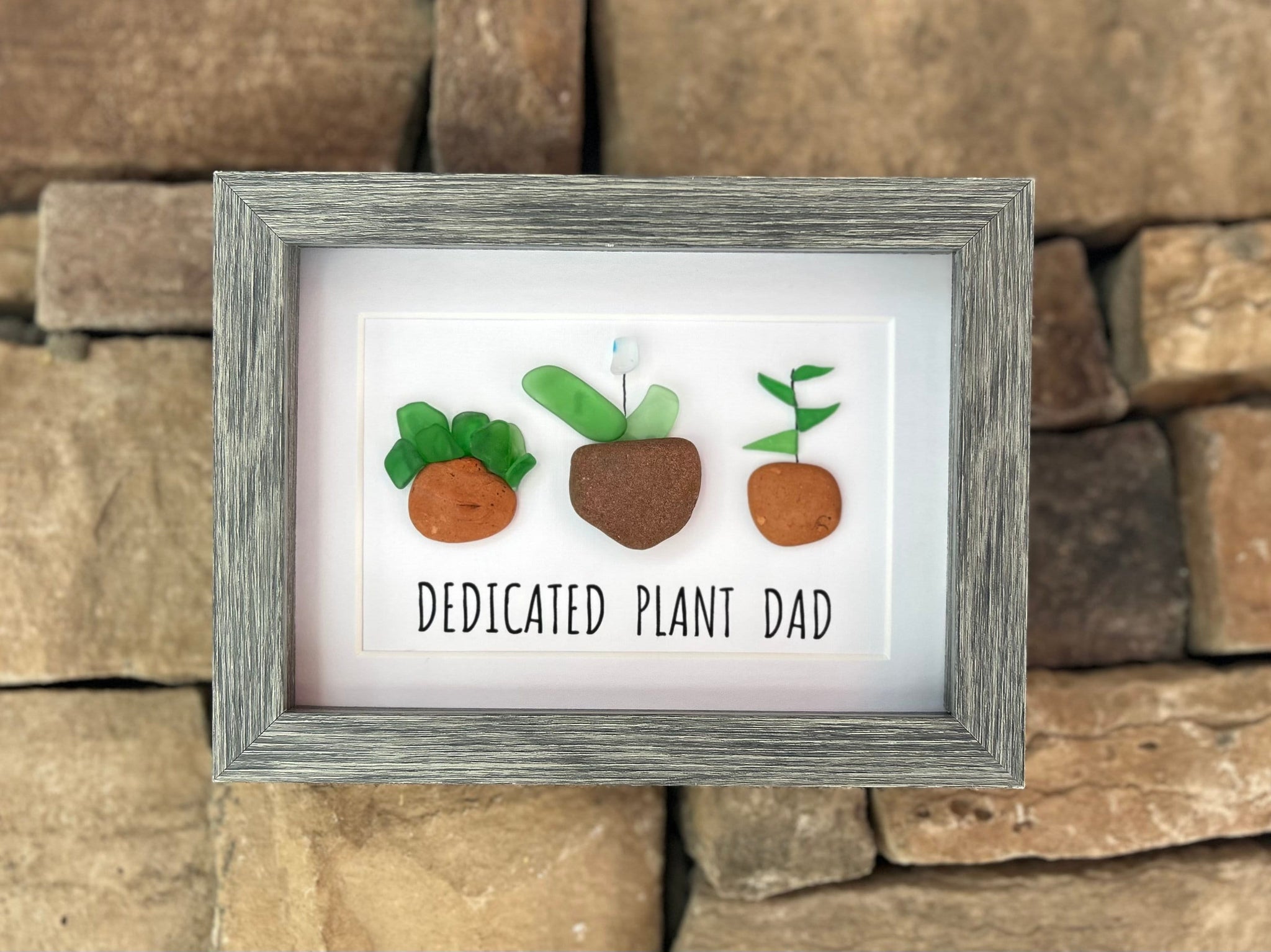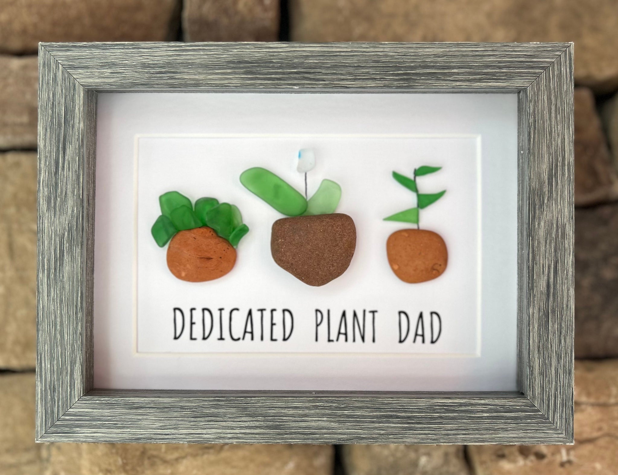 Dedicated Plant Dad | Art for Gardener | Gift for Plant Lover | Plants in Clay Pots | Gift for Mom | Gift for Dad | 5x7 Sea Glass Art