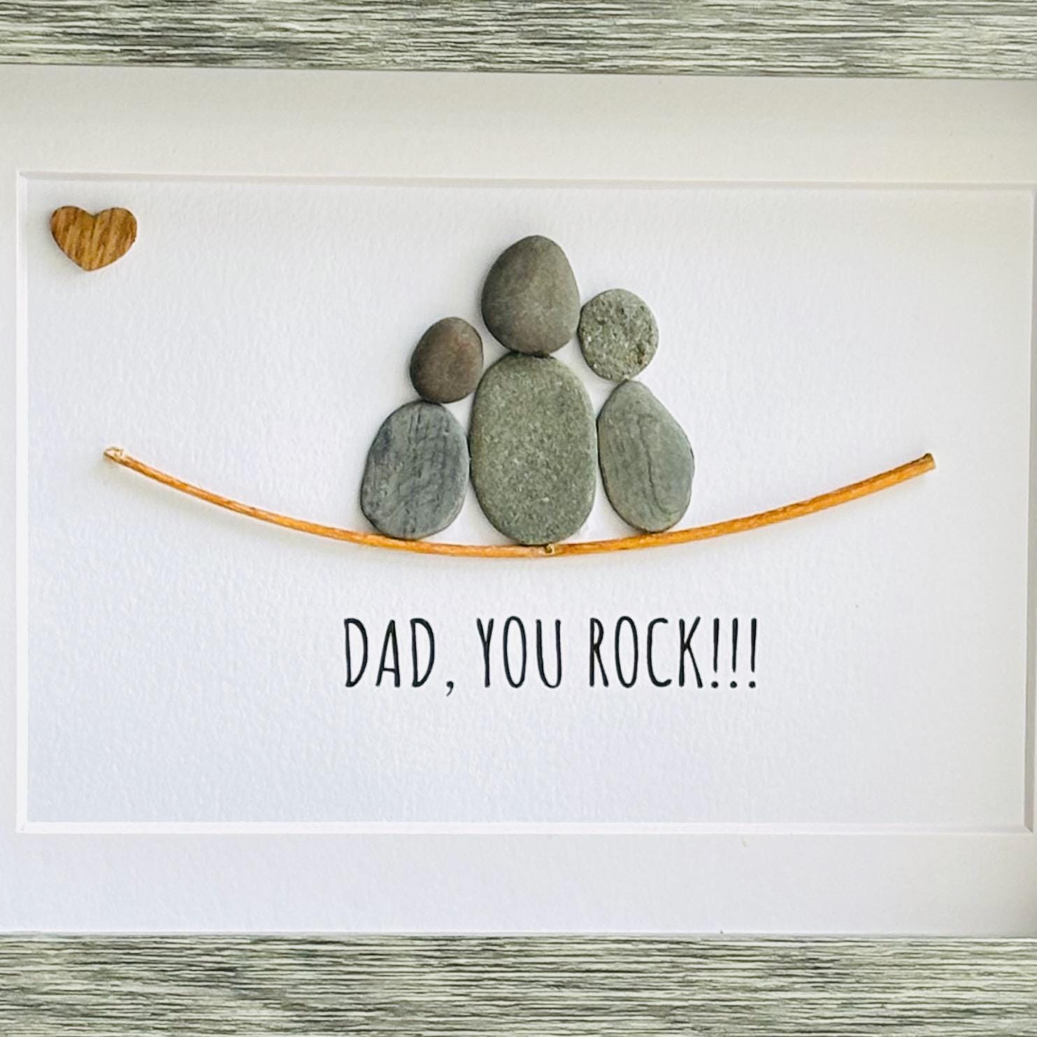 Dad You Rock Pebble Art Gift | Unique Father’s Day Present | Handmade Stone Family Artwork | Rustic Dad Gift From Kids
