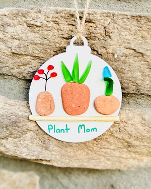 Celebrate your love for plants with this charming “Plant Mom” ornament, handmade from natural pebbles and sea glass. Featuring a colorful mix of greenery and blooms, this one-of-a-kind piece is perfect for plant lovers, gardeners, or anyone who adores nature-inspired art. A lovely addition to any home or holiday tree.