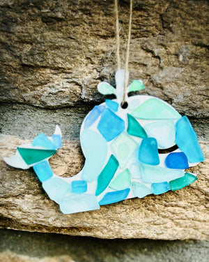 Whale Sea Glass Ornament | Coastal Ocean Decor | Handmade Blue Sea Glass Gift | Beach House Wall Hanging | Great Stocking Stuffer